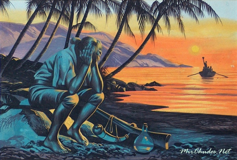 Но он не мог и предположить, что его одиночество затянется на 52 месяца. Хоть корабли, на самом деле, не раз подходили к острову, Селкирк от них прятался,ибо это были испанские галеры (в те времена Англия и Испания враждовали друг с другом, и английскому пирату вовсе не хотелось оказаться на борту неприятельского судна).